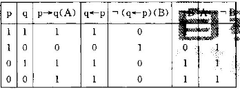 8、试用真值表判定下列A、B两个判断是否为矛盾关系。A:如果小李去看演出,那么小张也去。B:并非只有小张去看演出,小李才去。设:p表示“小李去看演出”,q表示“小张去看演出”。1表示“真”,0表示“假”