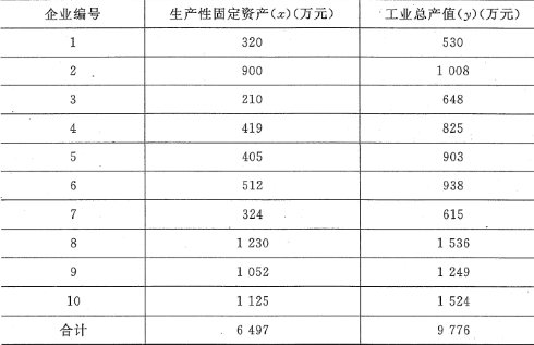 有10个同类企业性固定资产(x)和工业总产值(y)之间具有相关关系,其相关数据如下表所示: