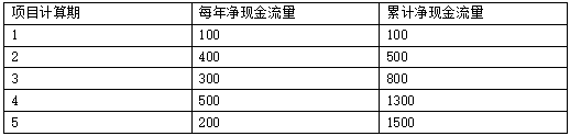 某公司打算进行一项投资项目,初始投资额为1200,项目为5年,每年的净现金流量见下表,计算该项目的投资回收期。