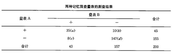 某护士同时采用两种记忆量表对200名老人进行记忆筛查,结果见下表,欲判断两种量表的测查结果有无差异?
