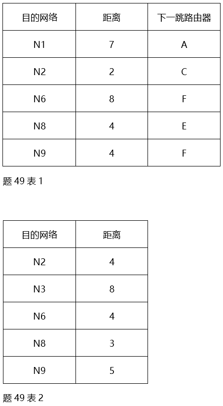 设网络中路由器使用RIP协议,路由器B的当前路由表如表1所示,B收到从路由器C发来的路由信息如表2所示。试给出路由器B更新后的路由表。