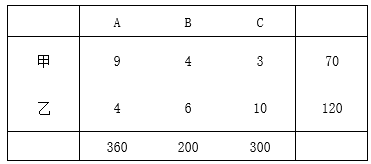某厂生产甲、乙两种产品,这两种产品均需要A、B、C三种资源,每种产品的资源消耗量及单位产品销售后所能获得的利润值以及这三种资源的储备如下表所示:
