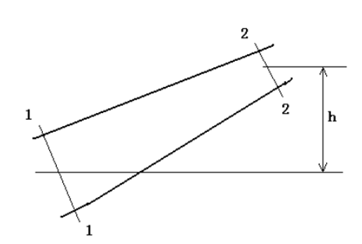 如图所示倾斜巷道,已知断面1-1的参数:静压P1=104560Pa,风速V1=2. 6m/s,风流密度ρ1=1. 28Kg /m