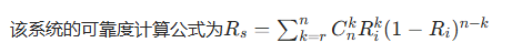 由 n 个相同的零件组成的 r/n 表决系统,其中,组成系统的每个零件的可靠度为Ri, 以下说法正确的是