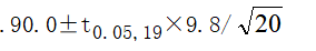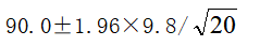 从某地随机抽取20名8岁正常男孩,测得其平均收缩压为90.0mmHg,标准差为9.8mmHg。其总体均数95%的置信区间是