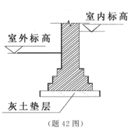 当室内地面垫层为三合土时,在题42图中画出基础的埋深,并画出防潮层的位置。试述其构造做法。