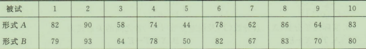 一个标准化英语水平测验有两等值形式A和B,向同一代表性被试组施测,所得数据见下表,试求测验的信度。