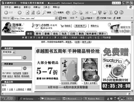卓越是B2C(商家对客户)的电子商务网站,这里像个大超级市场,与你交易的是一个专门出售商品的公司。用户只要进行简单的注册就可以像在超级市场里一样买到你想要的东西了。商品:卓越的商品分类主要为影视、图书、音乐、玩具、礼品、百货、IT、票务等,卓越的导航栏出现了“拍卖”二字,但别以为卓越还搞C2C的生意了,它只是链到了易趣而已。卓越网还不断推出特价品,前不久为了打开武汉市场,还推出了送500万现金的活动。或许你在特价品当中能找到自己满意的东东。