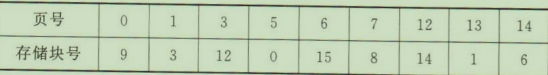 有一系统采用页式存储管理,每个虚拟地址由4位页号、11位页内位移组成,内存尺寸为32768字节,现已知某用户的页号与存储块号的对应关系表如下: