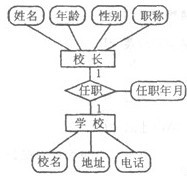 某校校长与学校间存在关系的E-R图如下,试将其转换为关系模式。