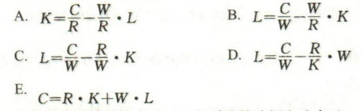 企业实现一定产出的生产成本,是各种要素投入的价格与投入量乘积之和。设资本的价格为R,劳动的价格,也即工资率为W,总成本为C,则下列相关的公式正确的有