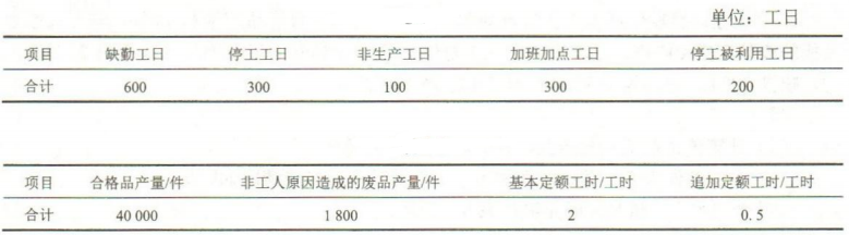 问题:(1)该企业的日历工日数、公假工日数、制度工日数、出勤工日数、制度内实际工作工日数、全部实际工日数。