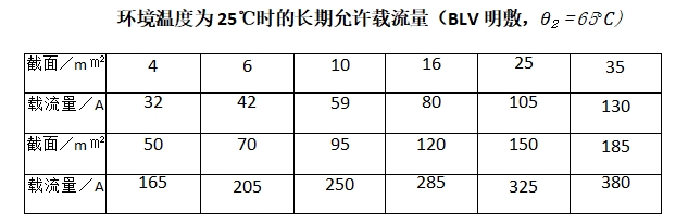 该生产车间的动力系统供电干线采用BLV铝芯塑料线室内明敷,低压配电接地系统型式为TN-S,当地最热月平均最高气温为32℃,试按发热条件选择此线路的导线截面(环境温度为25℃时的长期允许载流量见下表)。