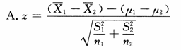 两个独立总体大样本平均数差异显著性检验中,如果两个总体的方差未知,则标准分数z的计算公式为