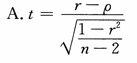 总体相关显著性检验的检验统计量t分数的计算公式为
