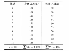 今有10名中学生的身高与体重测量的结果,具体见下表,问身高与体重的关系如何?