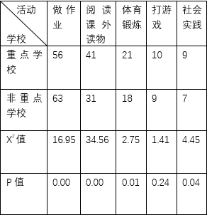 有研究者对重点中学与非重点中学学生课余时间安排情况进行了调查,结果如下: