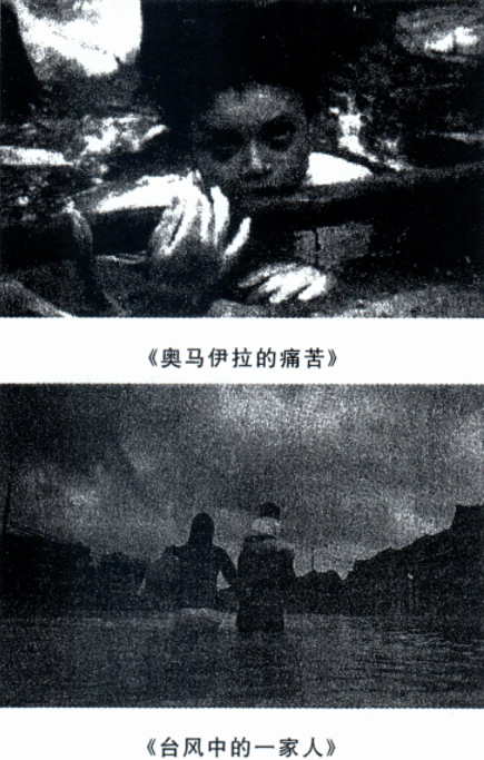 下图一是美联社摄影记者富兰克·福尼尔拍摄的《奥马伊拉的痛苦》,被评为1985年年度最佳新闻照片;图二是傅拥军的作品《台风中的一家人》,试从拍摄一场水灾的技巧分析这两幅作品的成功之处。