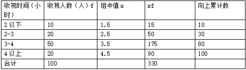 要求计算:球迷收视时间的算术平均数,中位数和众数。