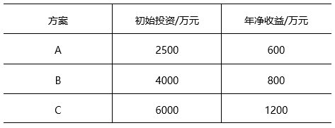 已知三个独立方案A、B、C,寿命均为10年,其现金流量如下表,基准收益率为8%,投资资金限额为10000万兀。试用方案组合法做出最佳投资决策。(结果保留整数)