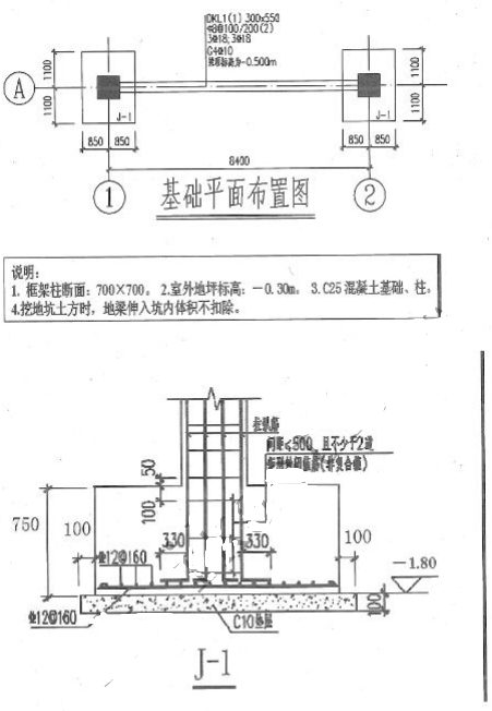 计算基础平面图(见第8页)中的C25混凝土基础清单工程量。