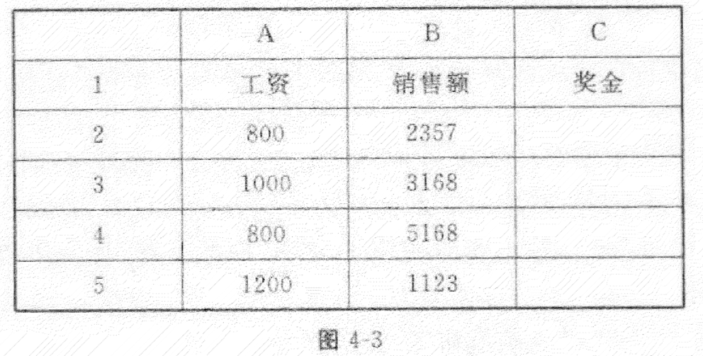 在如图4-3所示Excel工作表的单元格中计算工资为800元的职工的销售总额,应在C6单元格中输入计算公式()