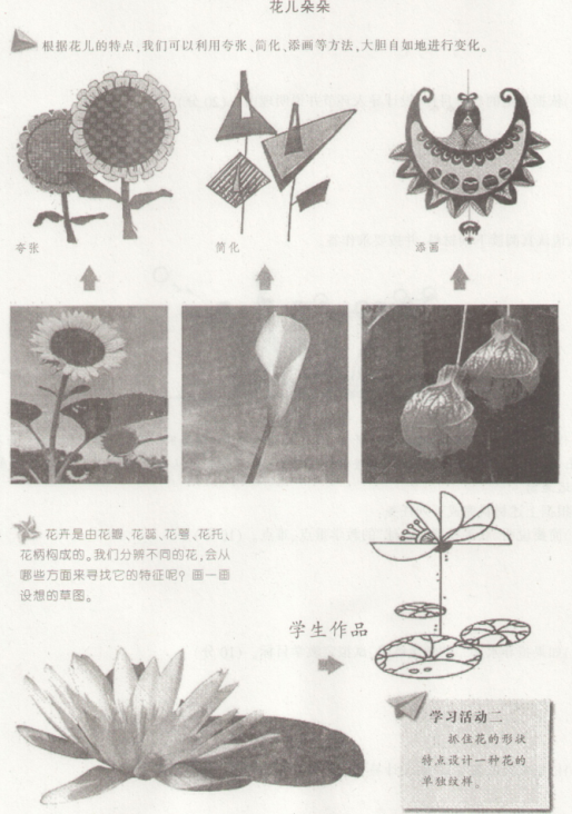 请根据上述材料完成下列任务: (1)什么是美术设计中的“单独纹样”?(10分) (2)如何指导低学段小学生学习,试拟定教学目标。(10分) (3)依据拟定的教学目标,设计教学过程并说明设计意图。(20分)