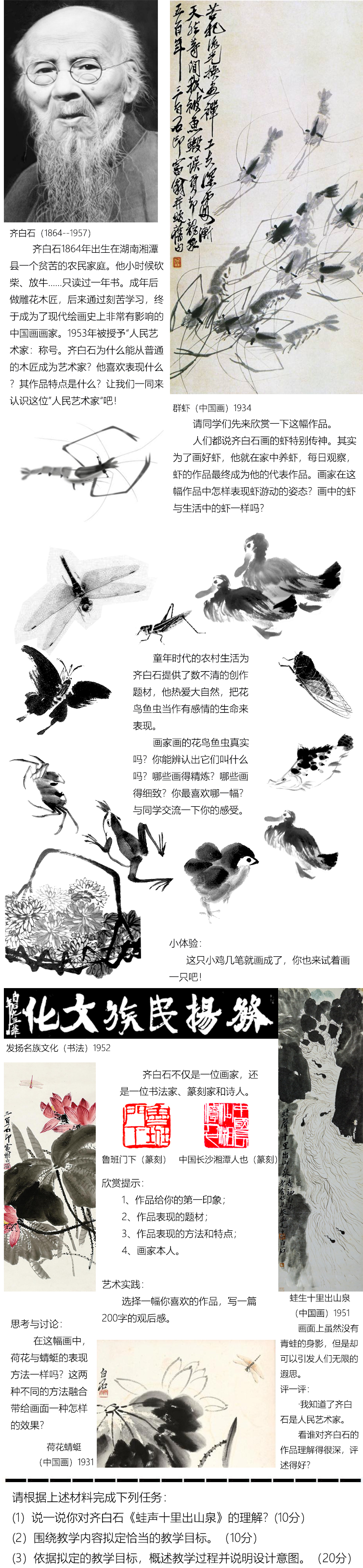 (1)说一说你对齐白石《蛙声十里出山泉》的理解?(10分)