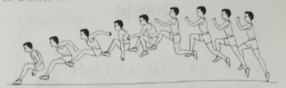 动作方法:蹲踞式跳远的技术动作是由助跑、踏跳、腾空、落地四个环节组成,助跑动作自然、轻松,逐渐加速,最后几步速度最快,最后一步步幅稍小。踏跳时以脚跟先着地并快速过渡到全脚掌蹬地起跳,同时摆动腿和两臂快速向前上方摆起,并在达到水平位置时制动,眼看前上方:身体蹬离地面后成“腾空步”,腾至最高点时,起跳腿屈膝收起与摆动腿靠拢,成蹲踞姿势:落地时,两小腿向前伸出,同时两臂后摆,以脚跟接触沙面后,立即屈膝缓冲,向前走出沙坑。