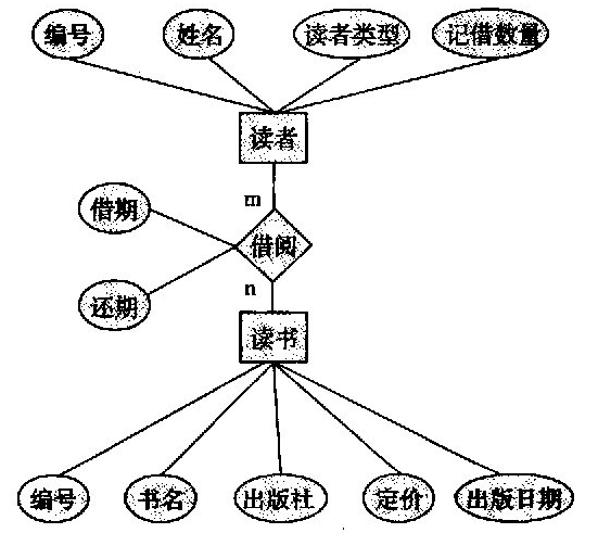 下图为图书借阅的E-R模型,请将其转化为关系模型.