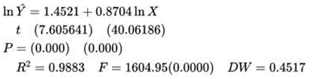 现有中国1980-2000年进出口收入总值X与GDP总产值Y的统计资料,回归结果如下: