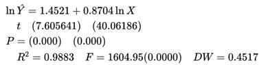 现有中国1980-2000年投资总额X与工业总产值Y的统计资料,回归结果如下:
