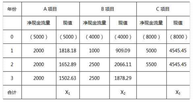 甲企业的资本成本为10%,有三个投资项目,初始投资分别为5000万元、4000万元和8000万元,有关数据如下表所示。