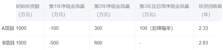 要求:计算两个项目的投资回收期,比较两个项目的优劣。