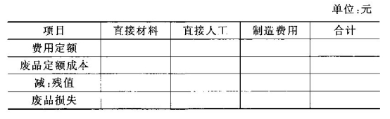 假设白云山公司生产的A产品生产过程中发现不可修复废品四件,按所耗定额费用计算废品的生产成本。其直接材料费用定额为50元,已完工的定额工时为100小时,每小时的费用定额为:直接人工1.2元、制造费用1.4元,回收残料15元。[要求]根据上述资料,编制不可修复废品报废损失计算表。
