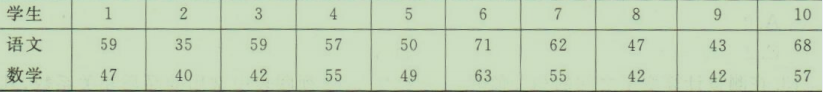 今有10名学生的数学和语文考试成绩(见下表),问数学与语文成绩是否相关?