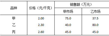 某地甲乙两个农贸市场三种主要蔬菜价格及销售额资料如下: