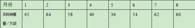 某企业2011年前8个月的产品实际销售量资料如下表所示。现取n=4,用移动平均法预测5~9月的销售量。