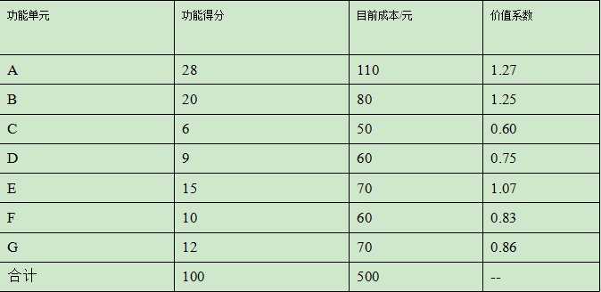 某产品各功能单元的基本数据如下表所示。试用平均先进分值法确定各功能单元的目标成本和成本降低幅度。