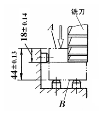 按图示定位方案铣削工件上的台阶面,工件高度尺寸为44±0.13mm,要求保正尺寸18±0.14mm。试分析和计算这时的定位误差,并判断该定位方案是否合理,若不合理如何改进,并画图示意。