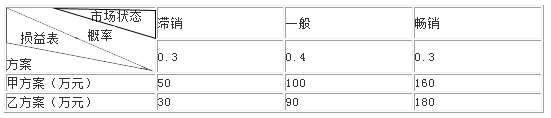 某企业在下年度有甲、乙两种产品方案可供选择,每种方案都面临滞销、一般和畅销三种市场状态,各种状态的概率和损益值如下表所示。