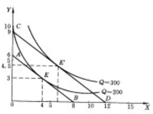 如图,等成本曲线从AB平行移至CD,表明总成本从24美元增至()