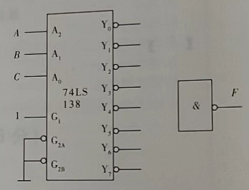 将下列函数写成标准“与或”式,并用741S138和与非门实现,完成电路的连线。F=AC+BC