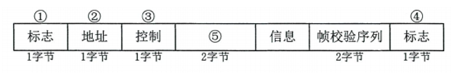 根据PPP协议的帧结构,分别写出下图中①-④字段对应的二进制序列及⑤空白处对应的字段名称。