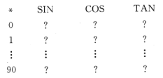 在磁盘上以文件形式建立一个三角函数表,其格式如下: