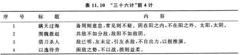 “三十六计”中前4计的内容如表11. 10所示。