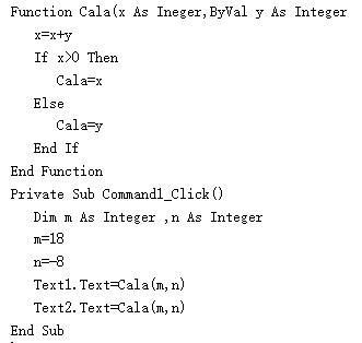 在窗体上有一个命令按钮(Command1)和两个文本框(Text1和Text2),编写如下程序,当程序运行后,单击命令按钮,文本框Text2中显示的值是_。