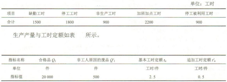 问题:(1)该企业的日历工时数、制度工时数、出勤工时数、制度内实际工作工时数、全部实际工时数。