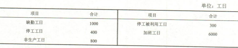 某企业某月份(30天)公假8天,采取一班制劳动,生产工人月平均人数为2000人,其他情况如下表所示。