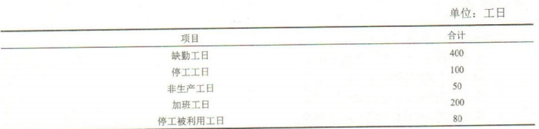 某企业2008年8月份(31天)公假8天,采取一班制劳动,生产工人月平均人数为600人,其他情况如下表所示。